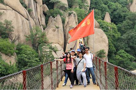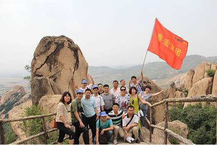 大家登上最高峰凤凰台,感受着山风裹着白雾迎面吹来的凉爽,俯瞰白雾笼罩着的山川,犹如身在仙境般的感觉。大家在山顶处合影留念,“畅游嵖岈山,共筑泰宏梦”的红色条幅闪耀夺目而又振奋人心,一股强烈的自豪感在泰宏人心中油然而生。