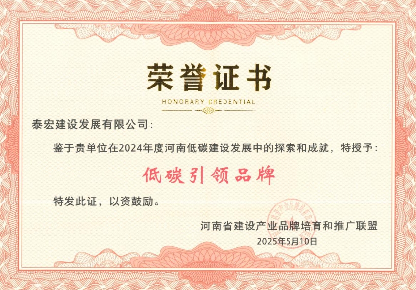 本次评选旨在推动河南建设品牌建设传播,增强社会对建设品牌的知名度,提升建设品牌的美誉度。此次荣誉的获得,不仅是对泰宏建设在绿色发展道路上积极探索和显著成效的高度认可,也标志着公司在推动河南建设产业绿色转型进程中,发挥了重要的示范引领作用。